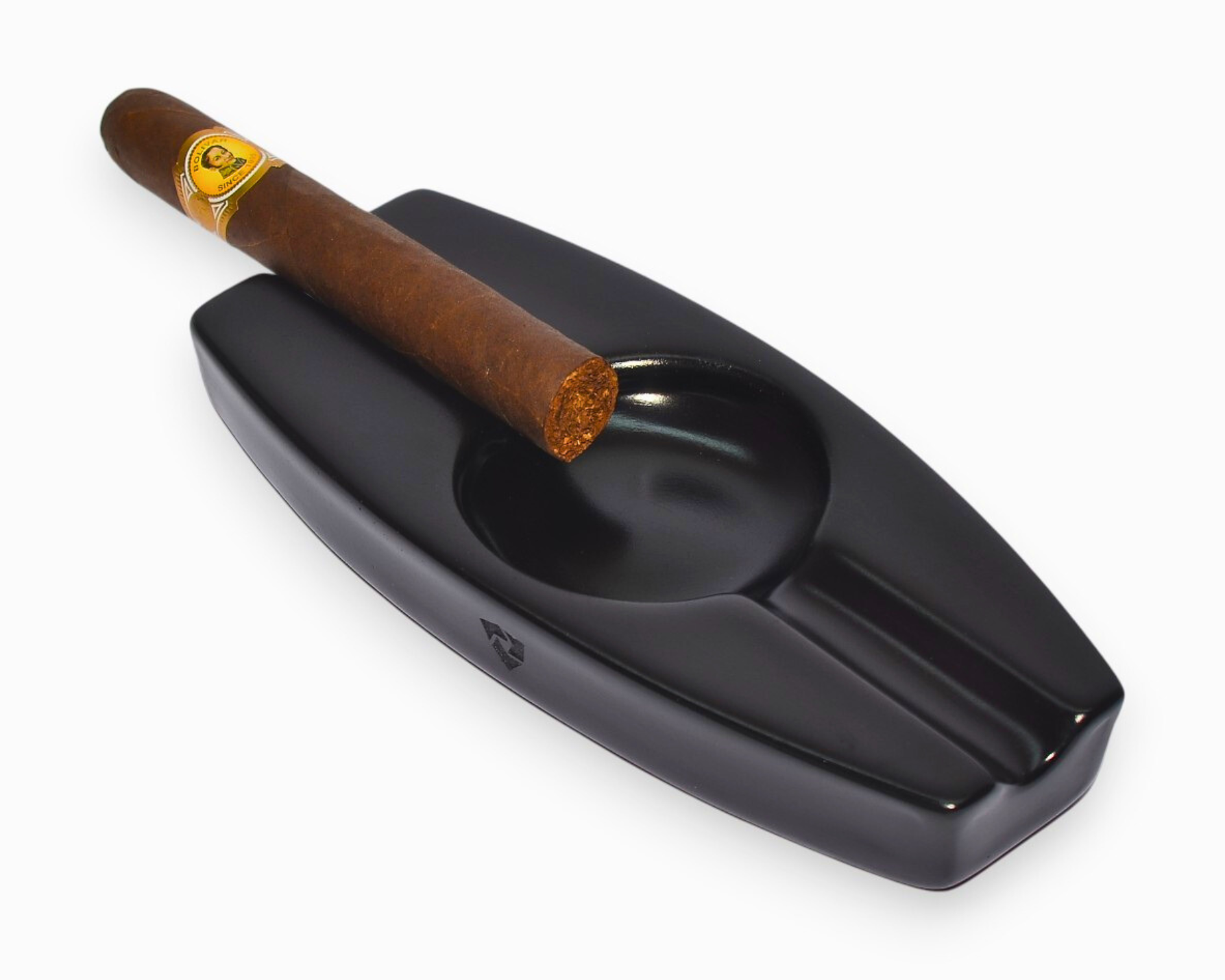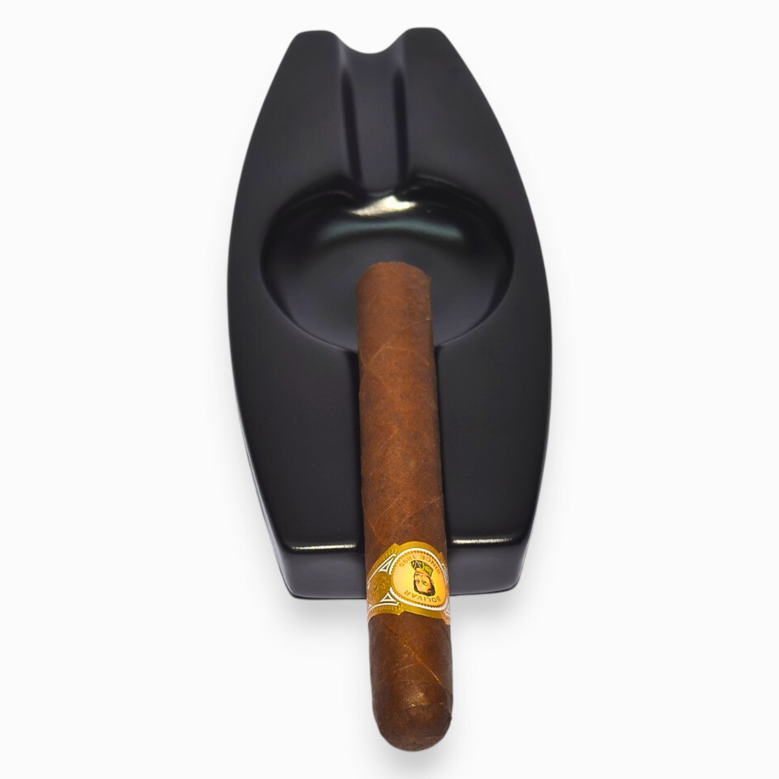 Cigar ashtray shaped like a boat with two cigar rests (black)